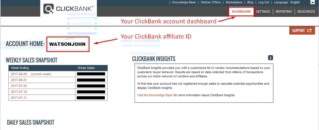 (Click here and follow the steps to create your ClickBank account if you don't have one already. Click here for video guide
