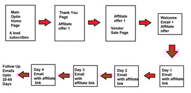 My powerful funnel will promote 1 product on the frontend and capture leads. A welcome email is sent immediately as soon as a lead subscribes, then system will send 1 email a day for next 10, 20, 30, 45 or 60 days (depending on the gig and package). Each of these emails will have your affiliate links to multiple products.